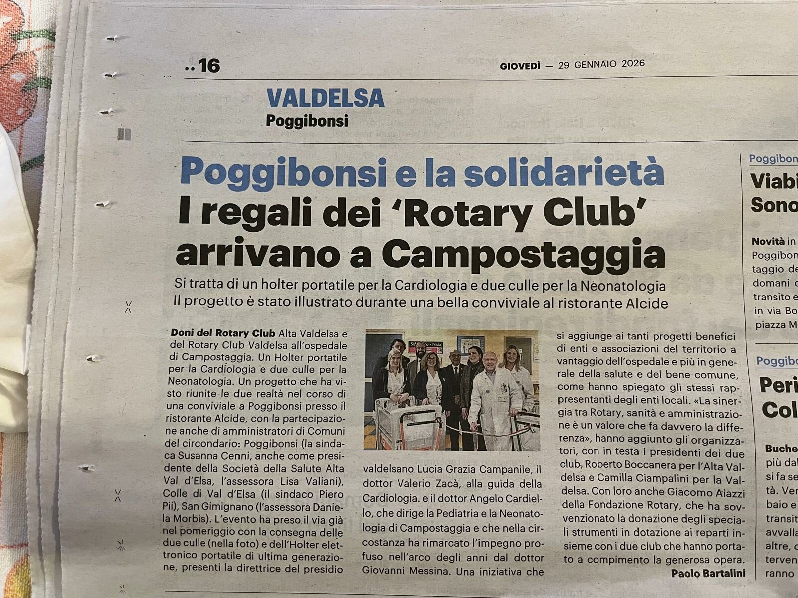 Campostaggia dono di un Holter e due Culle grazie al Rotary Club Alta Valdelsa e Rotary Club Valdelsa.