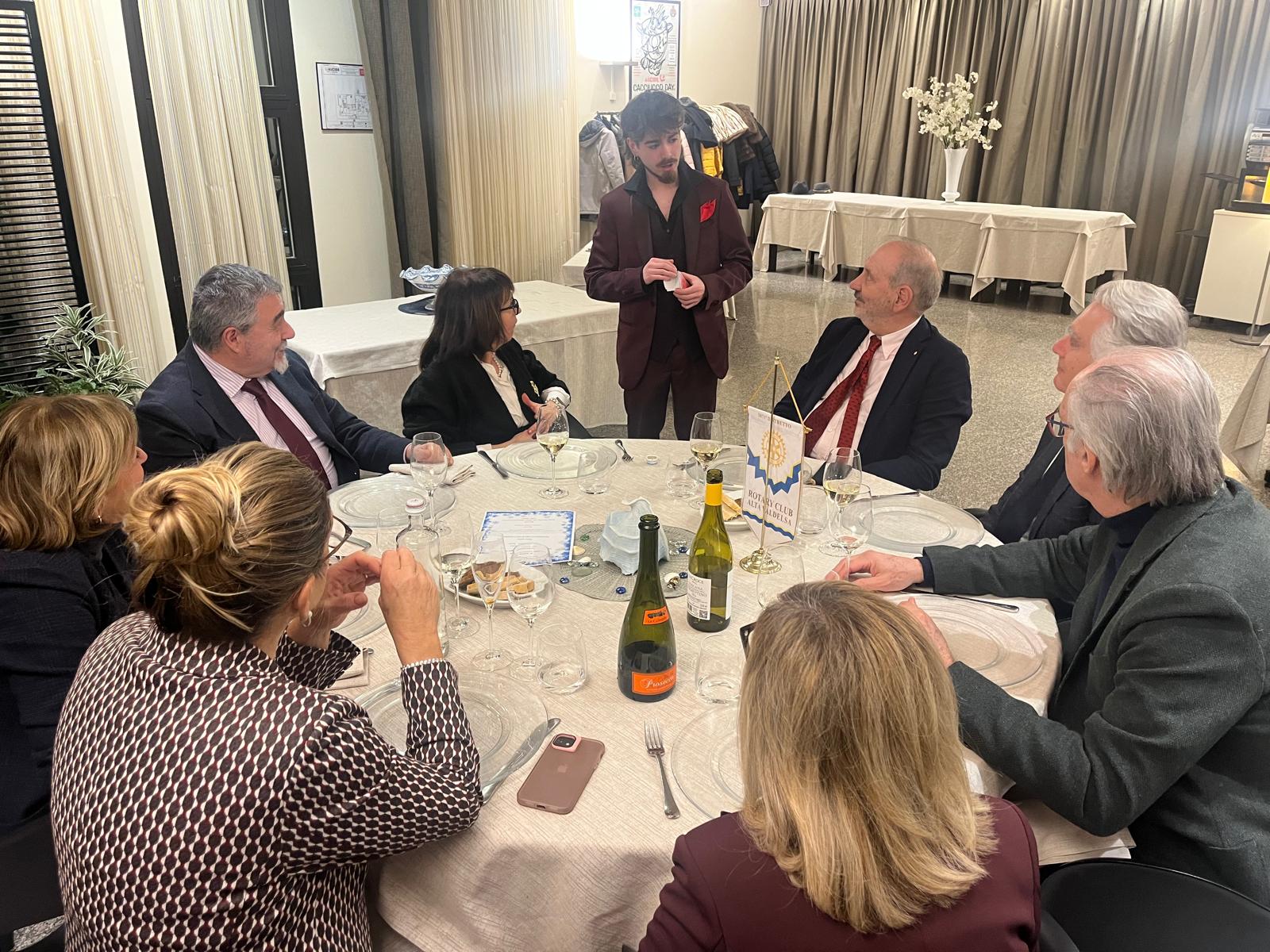 Una conviviale diversa dal consueto, che ha saputo coniugare intrattenimento e qualità relazionale. Un ringraziamento al mago per aver contribuito a rendere la serata piacevole e significativa per tutti i soci.