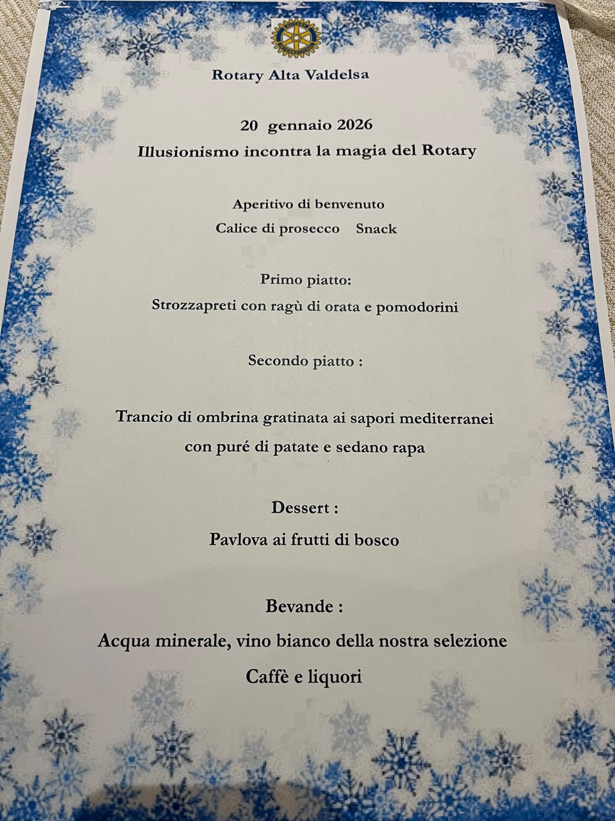 Abbiamo cominciato il 2026 con una serata speciale che abbiamo voluto pensare un po’ diversa dal solito, all’insegna della leggerezza, dello stupore e – perché no – anche della meraviglia, coniugando idealmente i motti Rotariani degli ultimi 2 anni, ‘La magia del Rotary’ ed Uniti per fare del bene’.