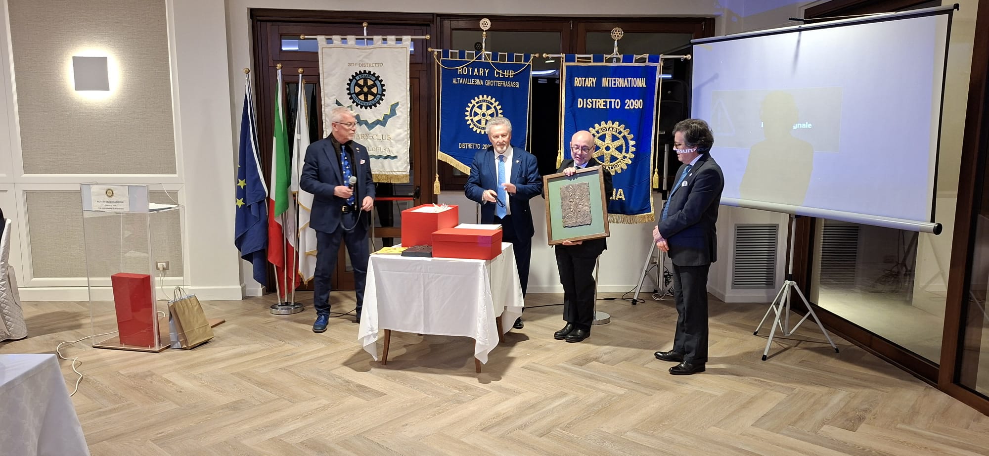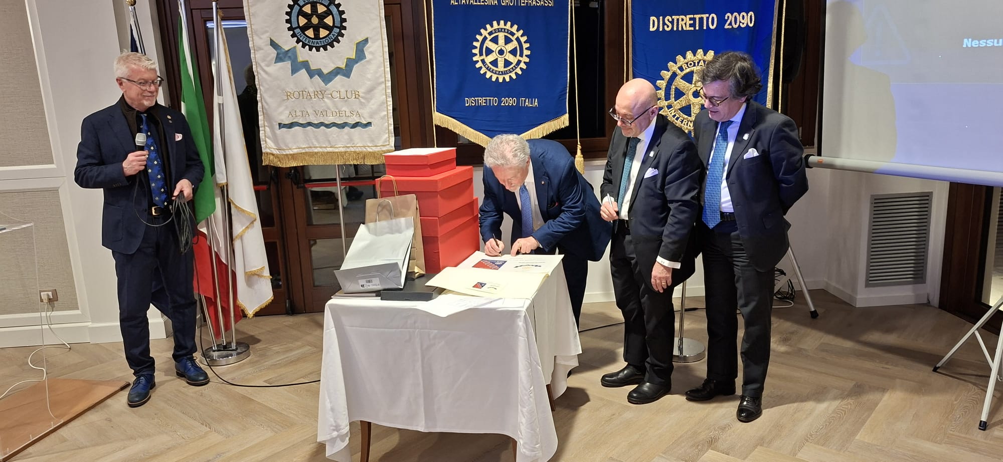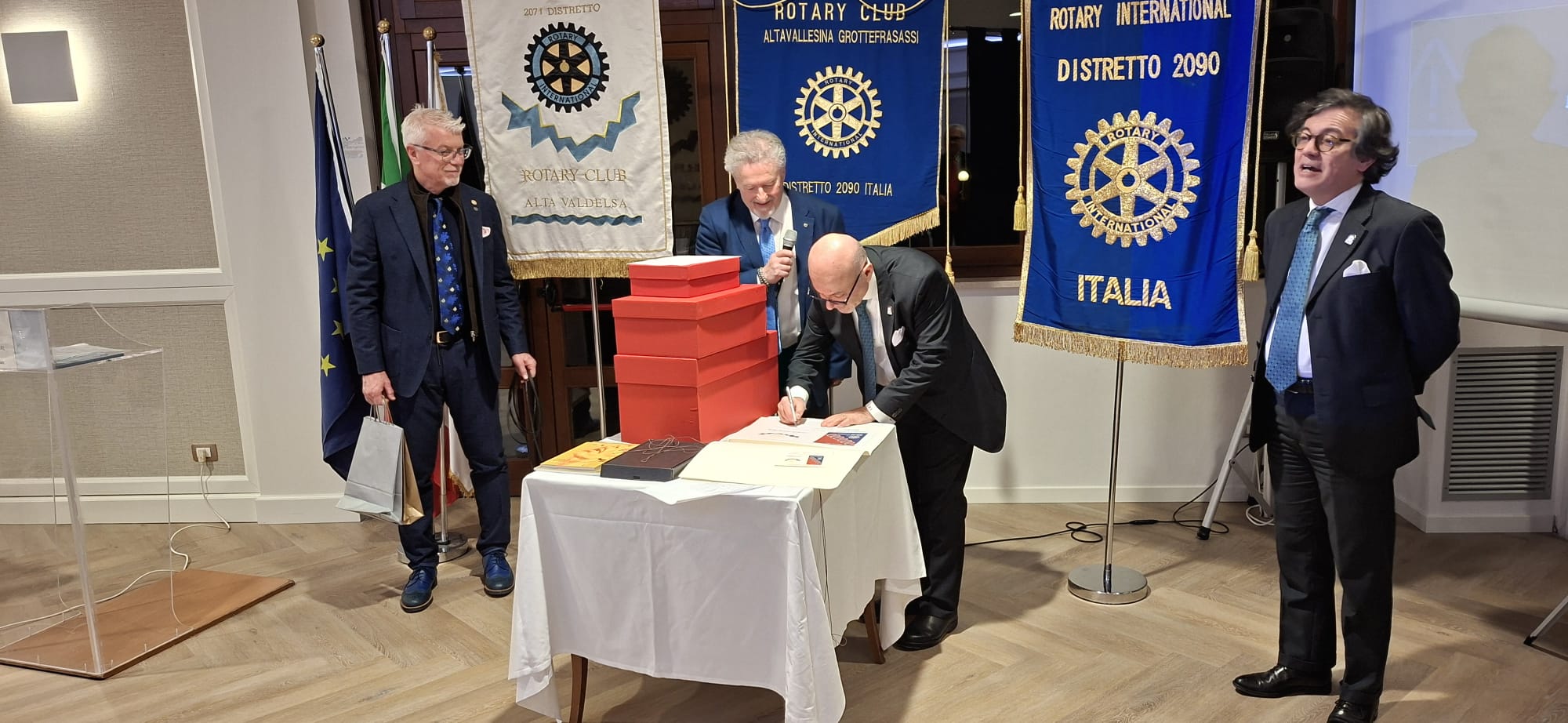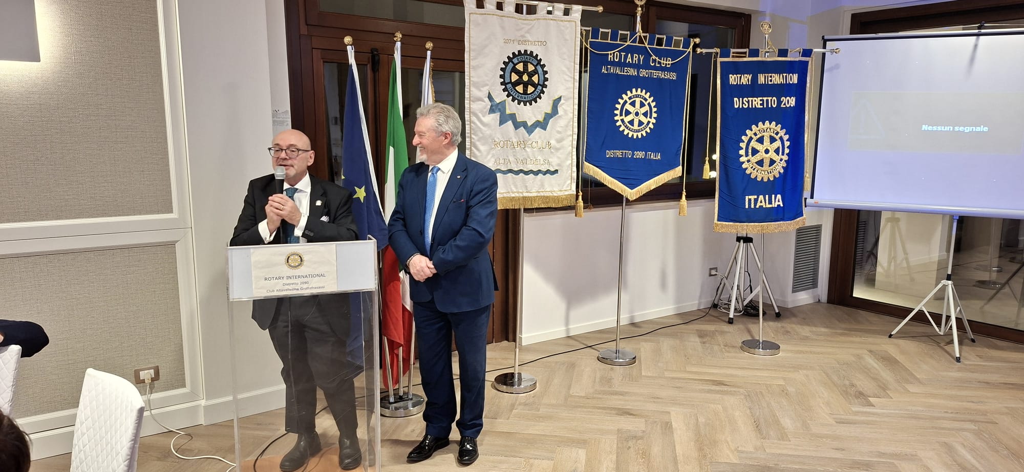 La serata del gemellaggio, alla presenza del Governatore del distretto 2090, Avv. Roberto Calai, ha rappresentato il cuore dell’incontro. In un clima conviviale e caloroso, i due club hanno ufficializzato un legame destinato a durare nel tempo, suggellato simbolicamente dal motto scelto per l’occasione: “Grotte e Cristalli”, evocativo della solidità e della preziosità dell’amicizia rotariana.