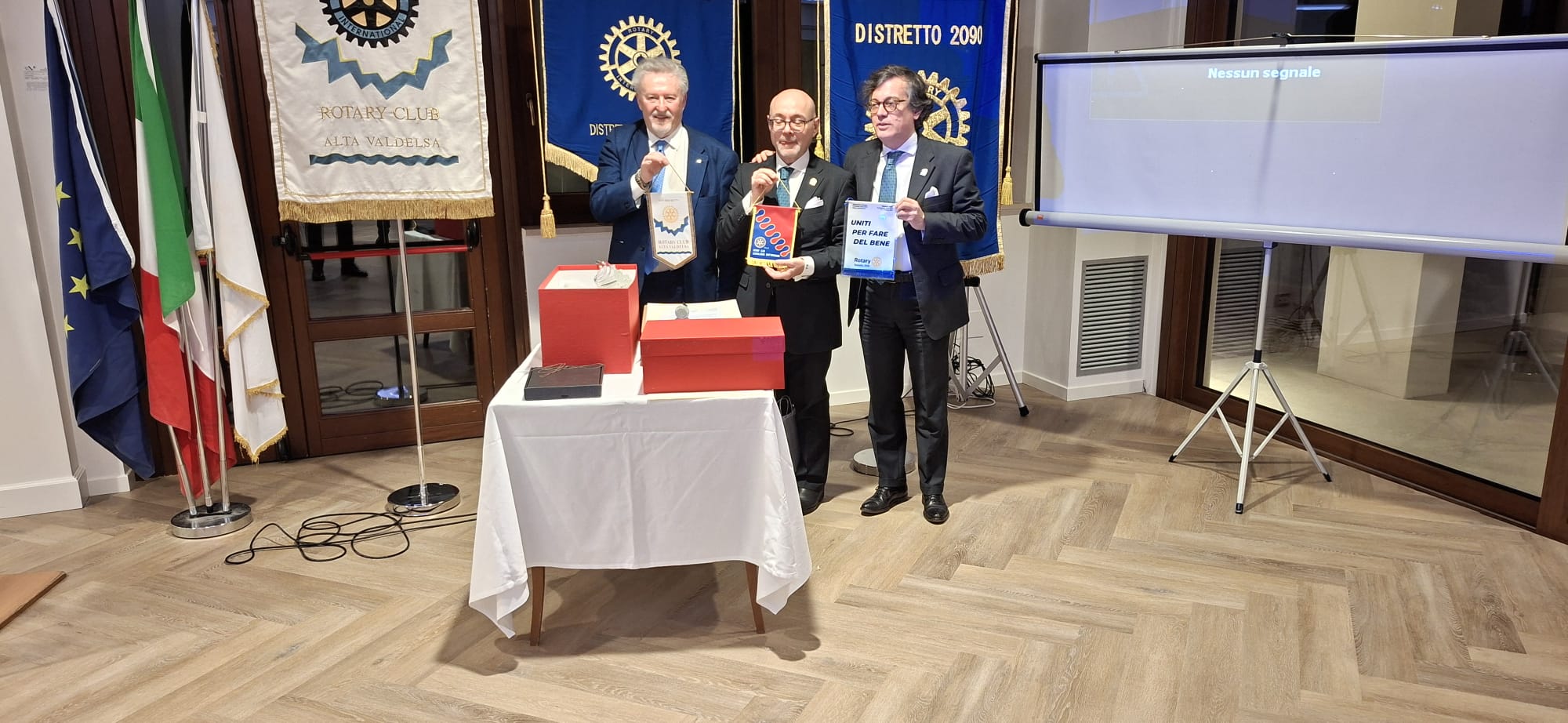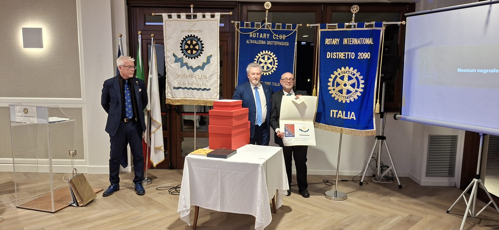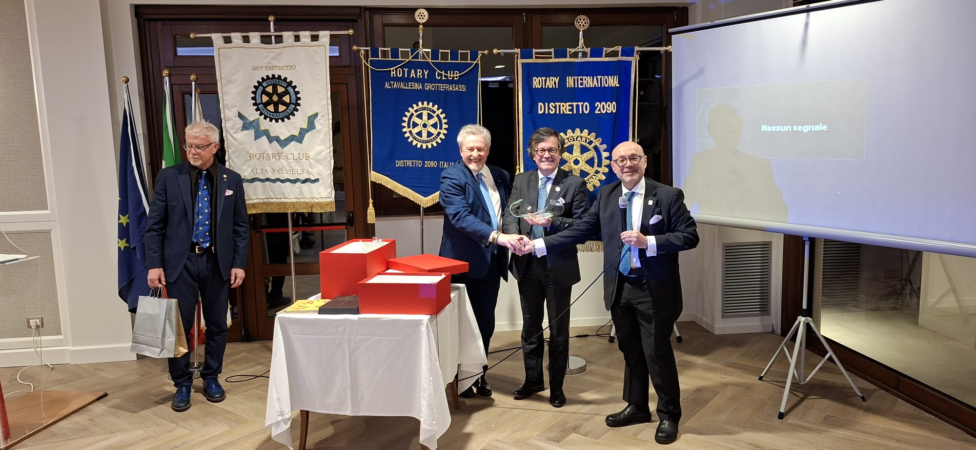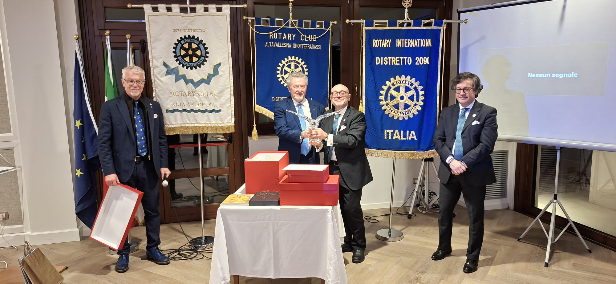 La serata del gemellaggio, alla presenza del Governatore del distretto 2090, Avv. Roberto Calai, ha rappresentato il cuore dell’incontro. In un clima conviviale e caloroso, i due club hanno ufficializzato un legame destinato a durare nel tempo, suggellato simbolicamente dal motto scelto per l’occasione: “Grotte e Cristalli”, evocativo della solidità e della preziosità dell’amicizia rotariana.